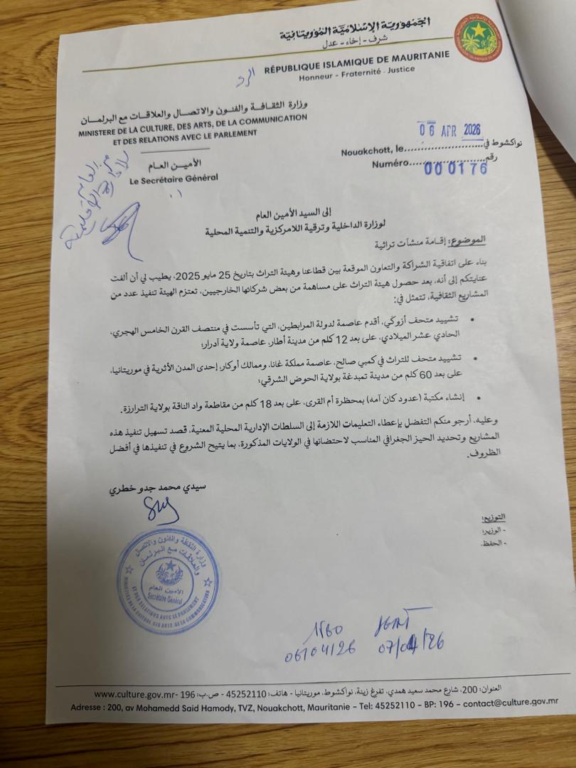 توجهت خلال عطلة هذا الأسبوع. بعثة من خبراء هيئة التراث الموريتاني برئاسة رئيس الهيئة الأستاذ محمد الشيخ ولد سيد محمد. الى ولايات. تكانت. وآدرار.