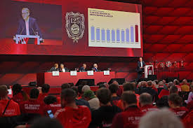أعلن نادي بايرن ميونخ الألماني، الأحد، تحقيق إيرادات سنوية قياسية بلغت 978.3 مليون يورو، كما أعيد انتخاب رئيسه هربرت هاينر لولاية ثالثة مدتها 3 سنوات، وذلك على هامش الجمعية العمومية السنوية للنادي.