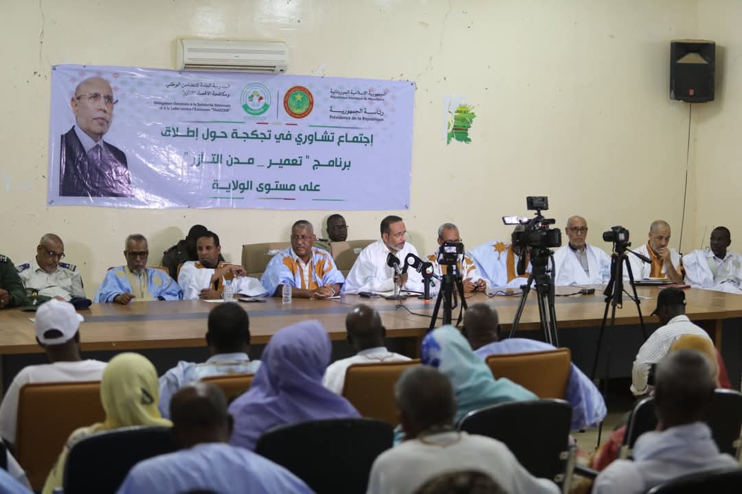 عقد معالي المندوب العام للتضامن الوطني ومكافحة الإقصاء، السيد الشيخ ولد بد، مساء الجمعة بمباني بلدية تجكجة، لقاءً تشاورياً خصص لإطلاق برنامج “تعمير – مدن التآزر” على مستوى ولاية تكانت، بحضور والي الولاية السيد محمد ولد أحمد مولود، وعمدة بلدية تجكجة السيد جدو ولد منابو، وعدد من المنتخبين، ونشطاء المجتمع المدني، وممثلين عن الشباب،