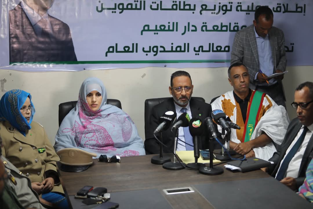 أشرف معالي المندوب العام للتضامن الوطني ومكافحة الإقصاء، السيد الشيخ ولد بد، صباح اليوم الجمعة، رفقة والي نواكشوط الشمالية السيدة أطفيلة بنت محمدن، على إطلاق عملية توزيع بطاقات التموين في بلديتي دار النعيم وتيارت، وذلك ضمن المرحلة الجديدة من برنامج التموين الذي تنفذه المندوبية العامة “التآزر”.