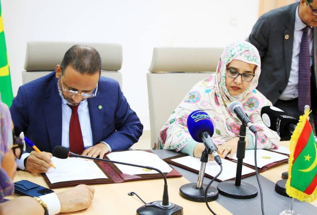 وقع معالي المندوب العام للتضامن الوطني ومكافحة الإقصاء، السيد الشيخ ولد بد، ومعالي وزيرة البيئة والتنمية المستدامة، السيدة مسعودة بنت بحام ولد محمد لغظف، صباح اليوم الجمعة 20 يونيو 2025 في نواكشوط، اتفاقية شراكة تهدف إلى إنتاج الشتلات، وتعزيز القدرات، وخلق فرص للتشغيل الأخضر، مع إشراك النساء والشباب في إقامة المشتلات الجماعية، و