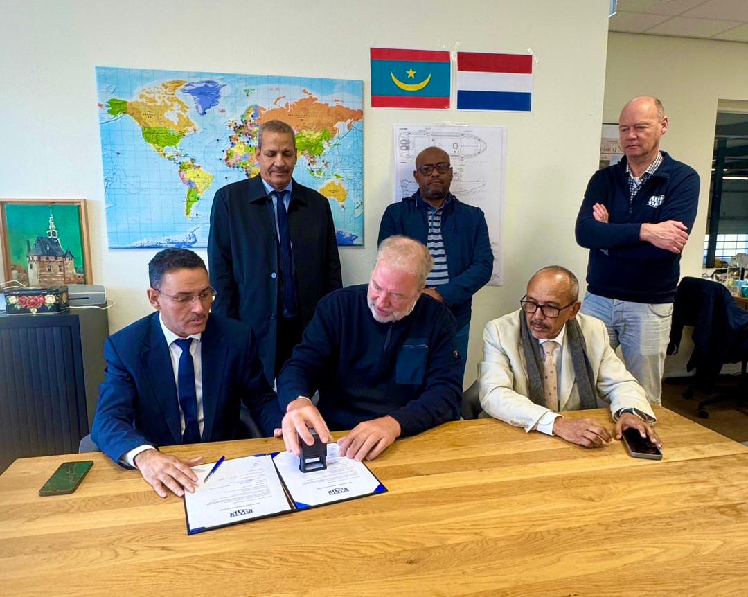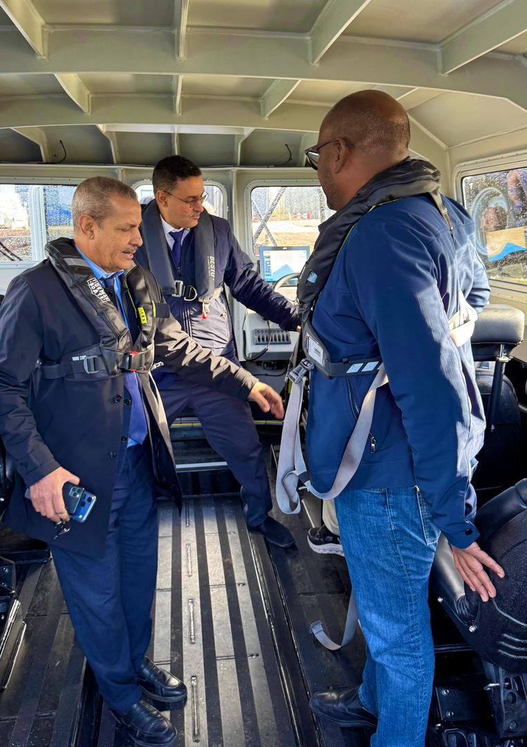 تم إجراء الاستلام المؤقت لزورق الإرشاد البحري الجديد “مقامة” في حوض بناء السفن التابع لشركة Tide Man Boats بمدينة أمستردام، وذلك في إطار تعزيز وتحديث الوسائل البحرية. وقد جرت مراسم الاستلام تحت إشراف المدير العام، السيد لمرابط ولد بناهي، وبحضور مدير شركة بناء السفن السيد تايد مان، إلى جانب عدد من المسؤولين من الطرفين، من بينهم السيد اعل ولد السيد، مدير القبطانية، والسيد عثمان الشريف ملعينين، مدير الأمن والسلامة المينائية، والسيد محمد ولد الشين، رئيس لجنة إبرام الصفقات العمومية.