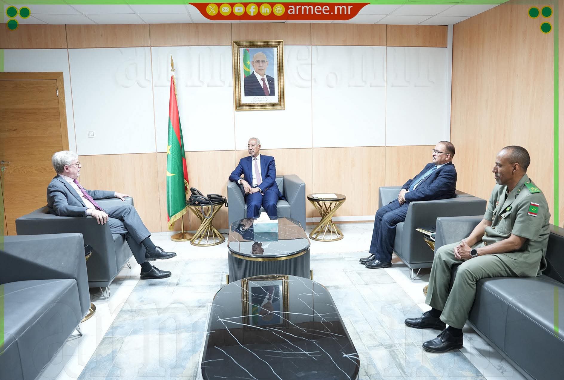 واستعرض الجانبان، خلال اللقاء، علاقات الشراكة القائمة بين موريتانيا والاتحاد الأوروبي، مع التركيز على آفاق تطوير التعاون الدفاعي وتكثيف التنسيق في ظل التحديات الأمنية التي تشهدها المنطقة. كما أكد الطرفان أهمية تبادل الخبرات بما يدعم جهود الاستقرار والأمن الإقليمي.