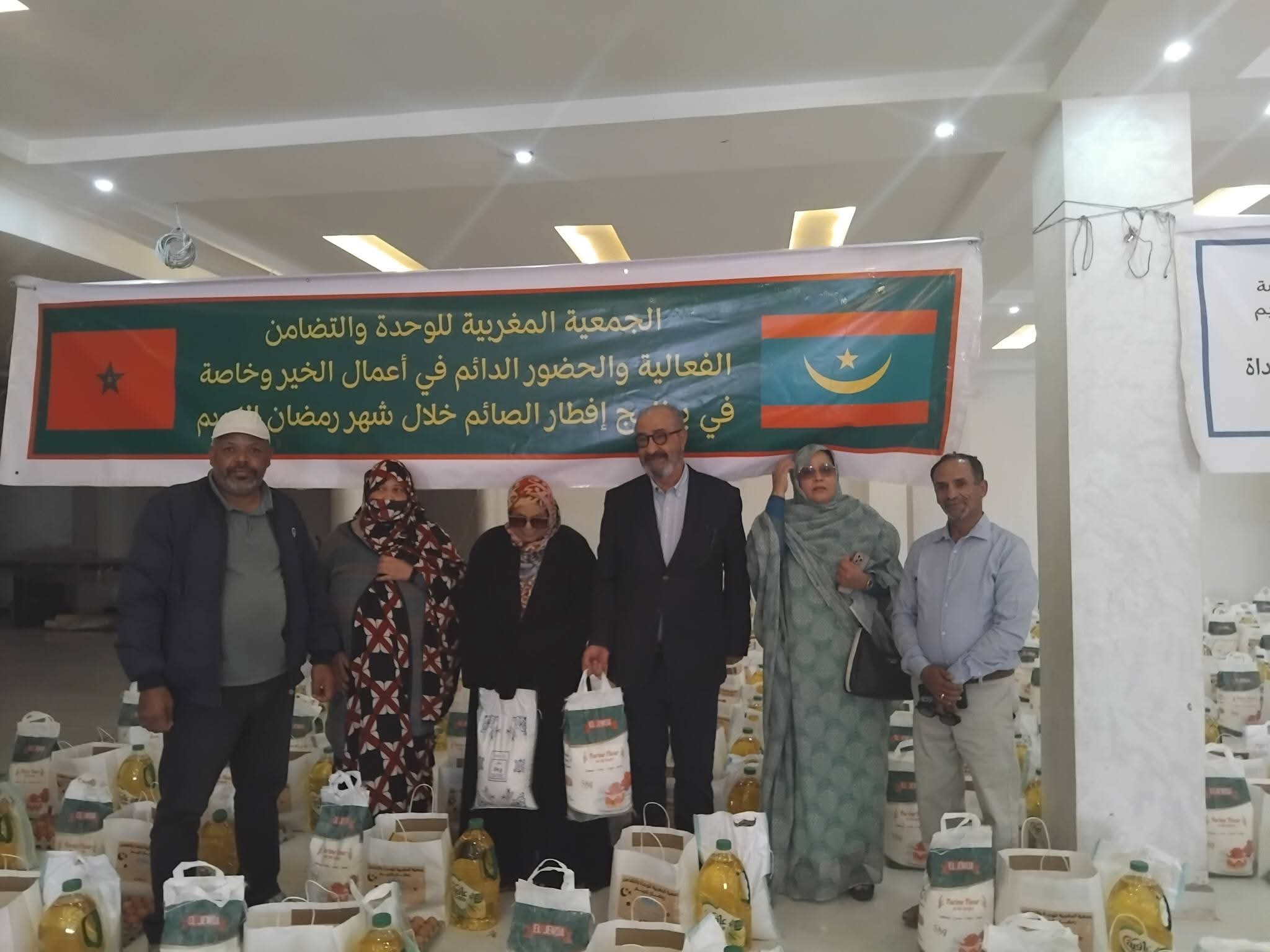 وزعت صباح الاثنين الجمعية المغربية للوحدة والتضامن كعادتها كل عام 250 سلة غذائية استفاد منها عدد كبير من ابناء الجالية المغربية المقيمة في موريتانيا وعدد كبير من الموريتانيين وذلك للتخفيف عنهم في هذا الشهر الفضيل وكذ